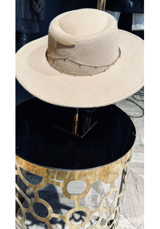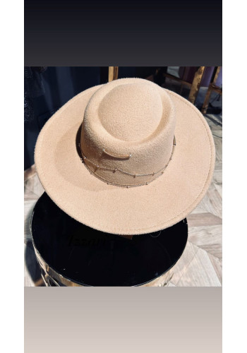Zwrot do 14 dni!Elegancki kapelusz z ozdobnym łańcuchem w odcieniu ciepłego beżu, wykonany z miękkiego filcu o przyjemnej strukturze. Ozdobiony delikatnym, złotym łańcuszkiem i subtelną metalową aplikacją, które dodają mu szyku i wyjątkowego charakteru. Idealny dodatek do jesiennych stylizacji - podkreśli Twój styl i doda klasy każdej stylizacji.