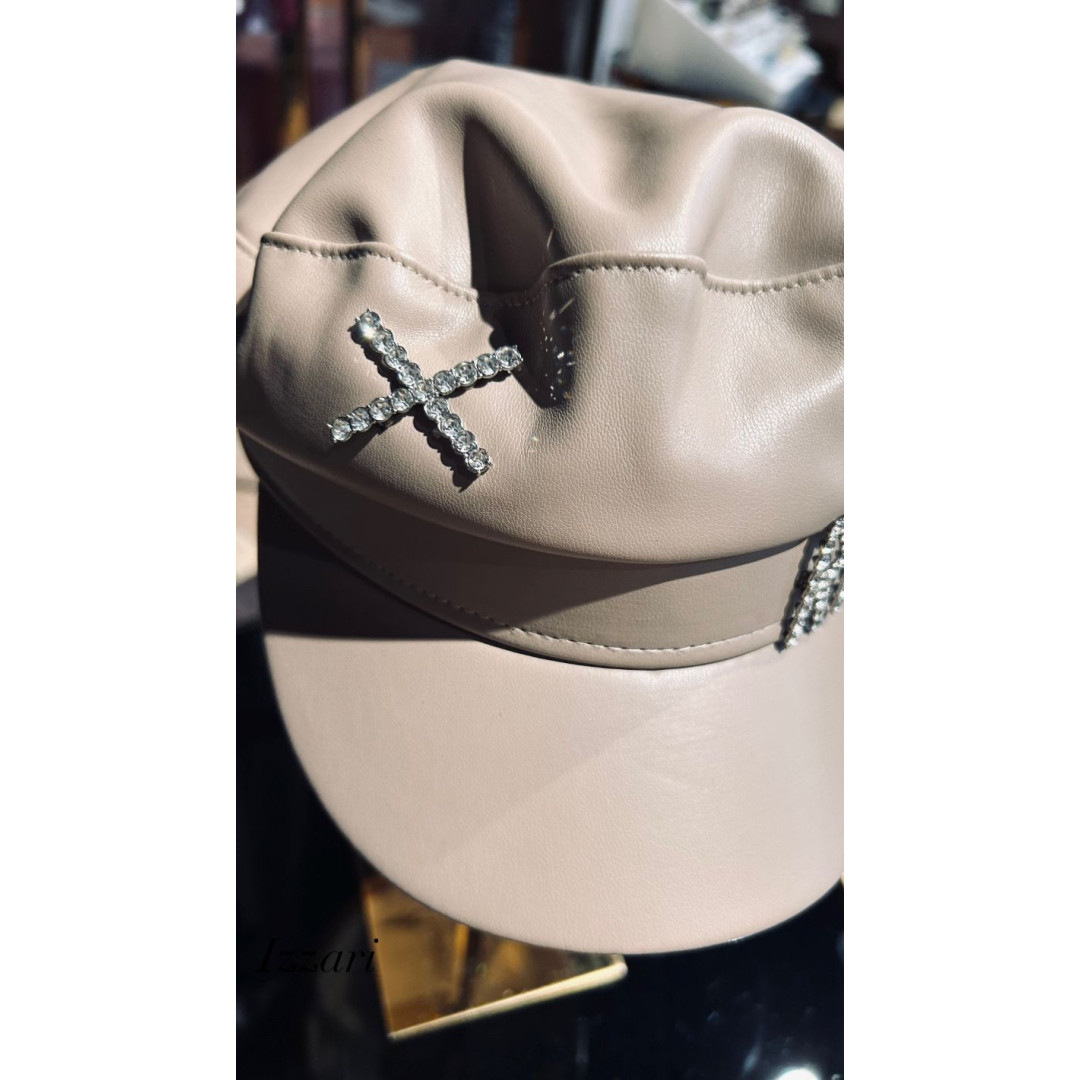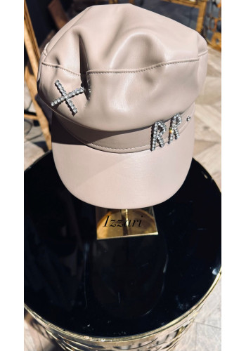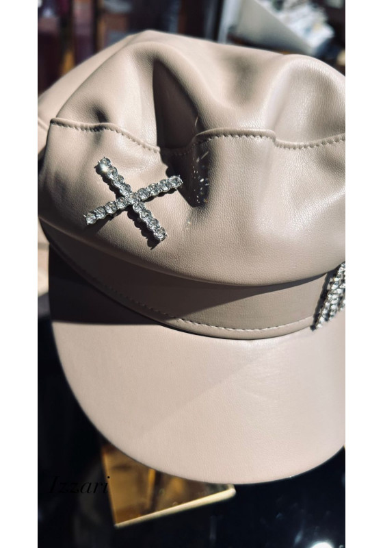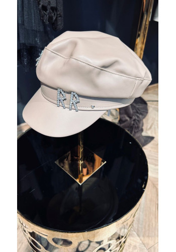 Zwrot do 14 dni!Beżowy kaszkiet z ekoskóry z ozdobnymi aplikacjami. Stylowy kaszkiet wykonany z miękkiej ekoskóry w odcieniu beżu. Model zdobiony połyskującymi przypinkami w kształcie litery "R" oraz "X", które dodają mu elegancji i oryginalnego charakteru. Idealny dodatek do jesiennych i wiosennych stylizacji - łączy klasę i nowoczesność.