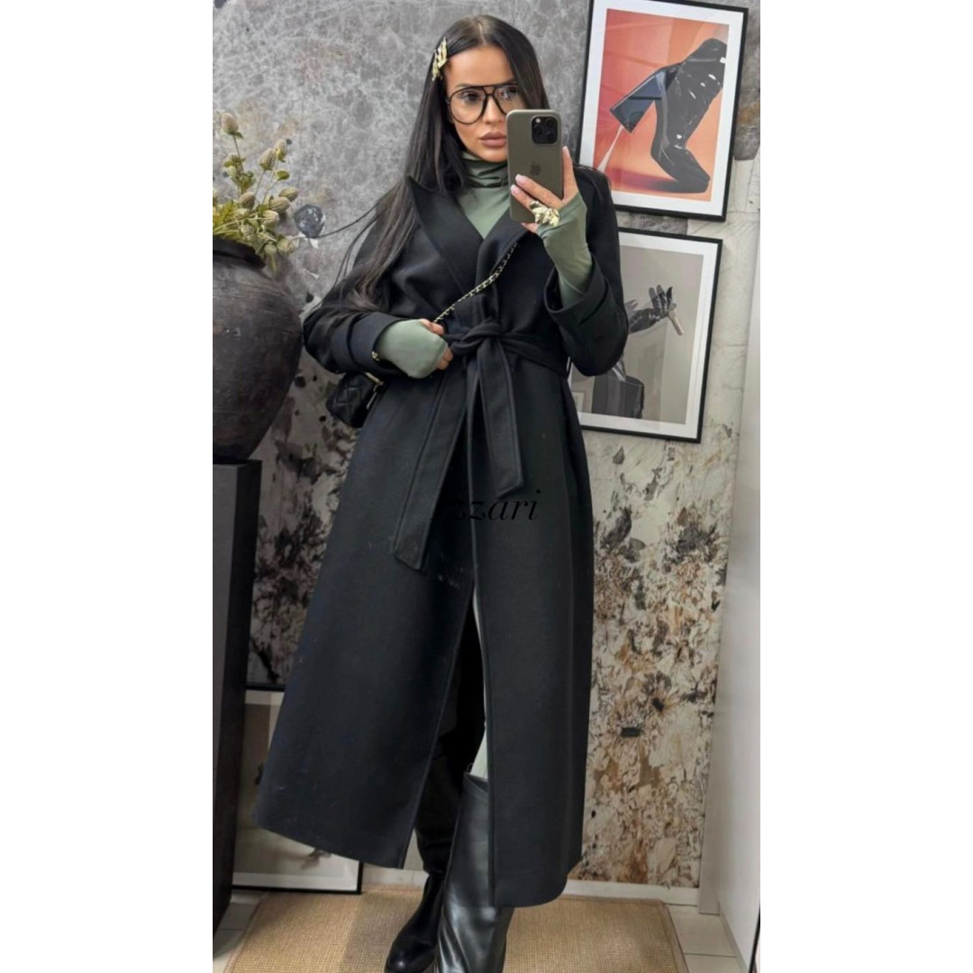 Zwrot do 14 dni!Elegancki czarny płaszcz o klasycznym kroju z wiązaniem w talii to ponadczasowy element garderoby, który łączy styl i komfort. Wykonany z wysokiej jakości materiału, zapewnia ciepło i wygodę w chłodniejsze dni. Pasek w talii pięknie podkreśla sylwetkę, a minimalistyczny fason sprawia, że płaszcz doskonale komponuje się zarówno z eleganckimi, jak i codziennymi stylizacjami.